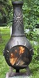 The Gold Accent Sun chiminea is the hot new model for 2010. Blue Rooster heard the customer requests for a large size Sun style chiminea and now its ready to ship. Easy to light and clean burning (due to proper drafting), this new chiminea continues The Blue Rooster line of unique chiminea designs. Made of heavy cast aluminum construction up to 3/4 inch thick in some areas, the Sun Stack chiminea is built to last. The Blue Rooster recommends the Charcoal color because of its lasting qualities in a high heat wood burning fireplace application. Gold Accent and Antique Green will darken during firing from pigment changes in high heat colored paints. Spark screens are included for the chimney, and to go over the mouth for extra safety. The stainless steel hinged mouth screen easily swings open for adding wood or toasting marshmallows. Includes a grill grate for late night burgers.